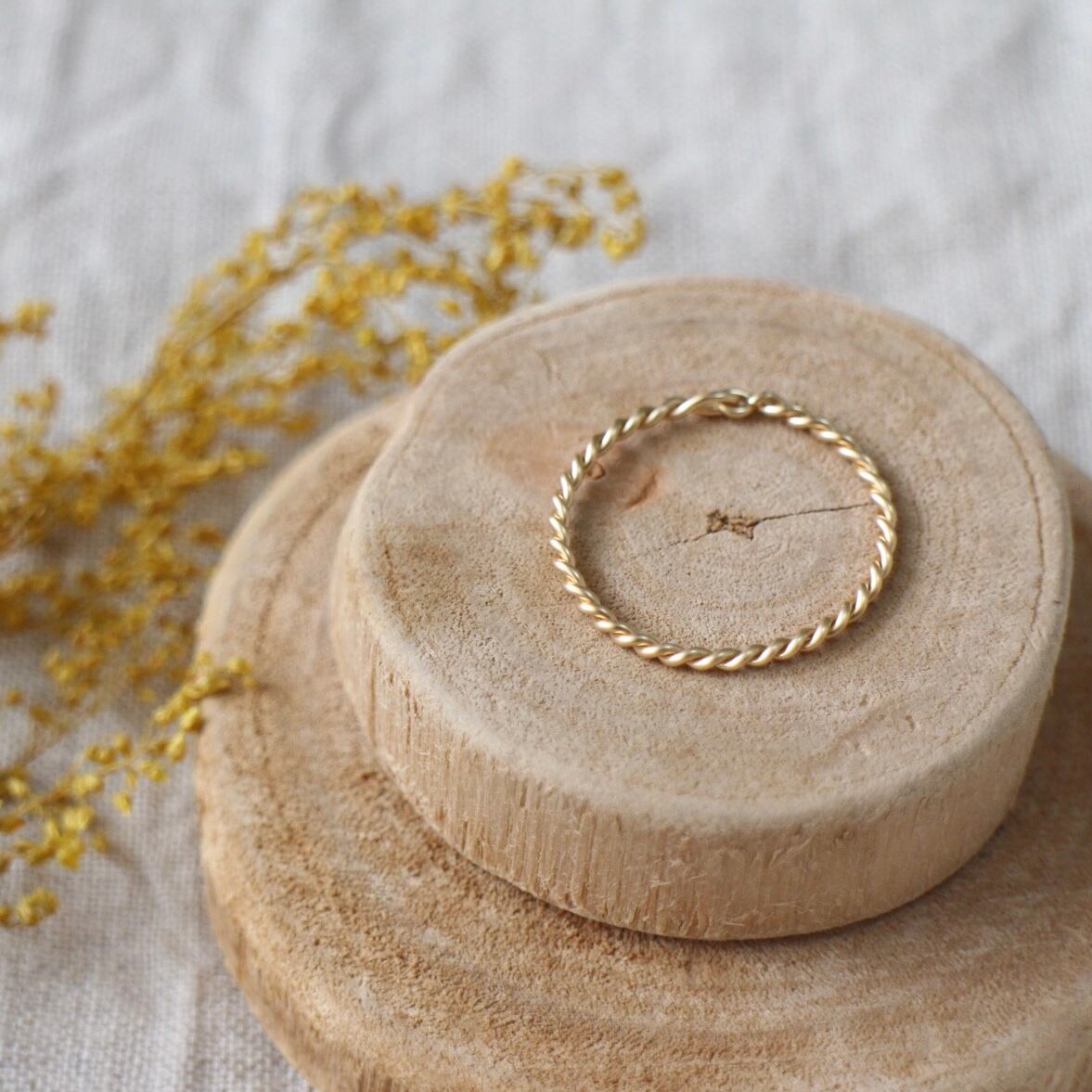 14kgf(ゴールドフィルド)は、真鍮の芯に14金を高熱で圧着させた素材で、金の層が厚く、剥がれにくいのが特長です。