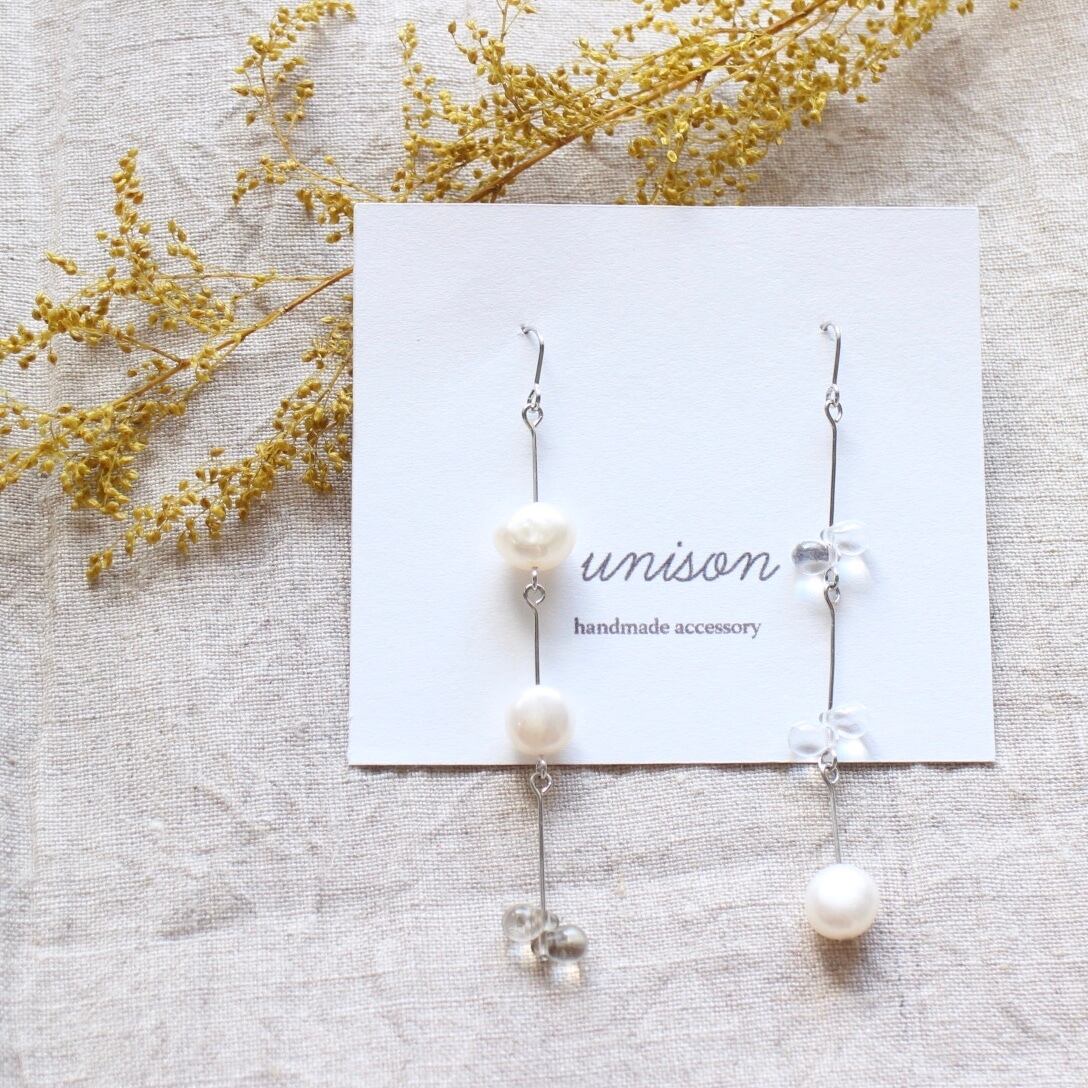 淡水パールとしずく型のチェコガラスを使った
